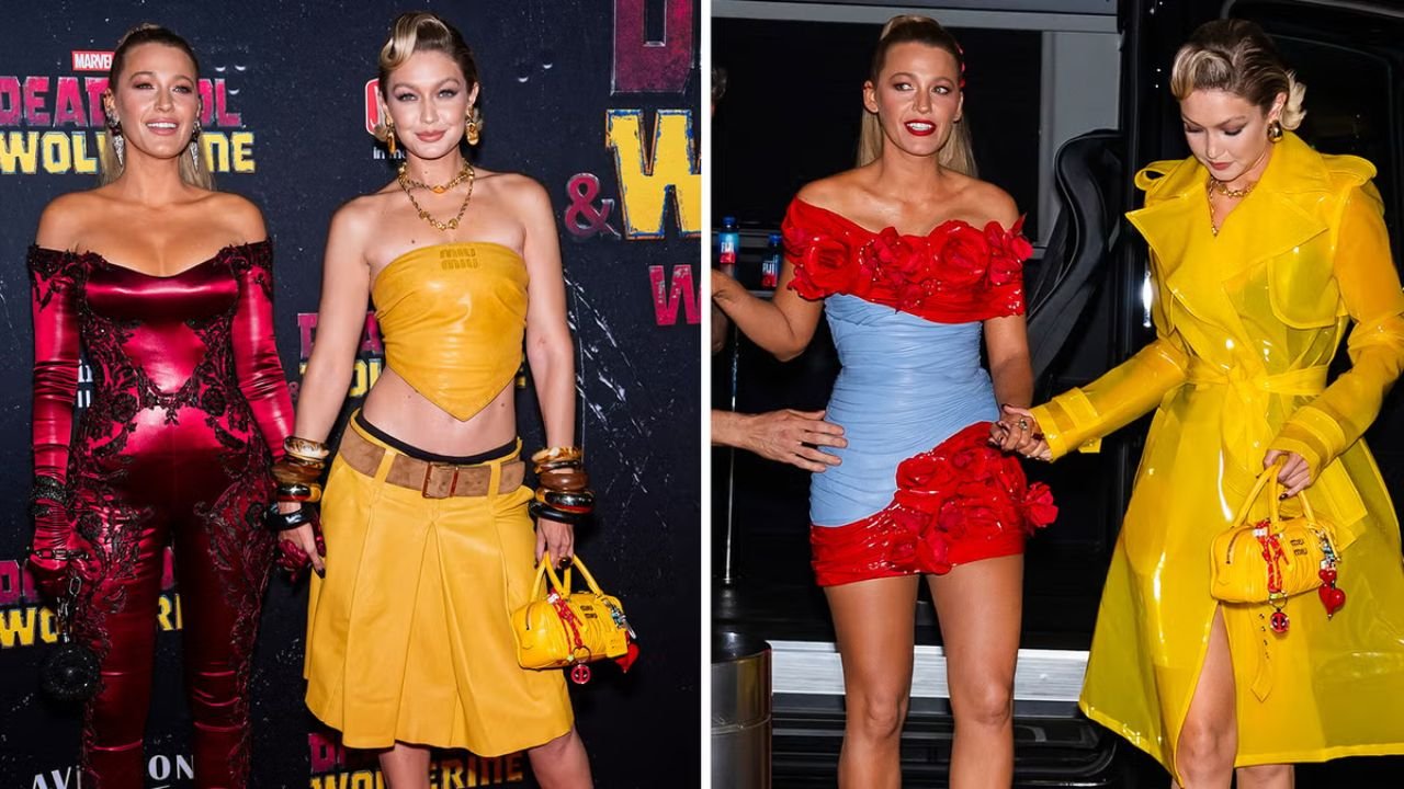Gigi Hadid Wore a Yellow LaQuan Smith Trench Jacket with Blake Lively in Balmain to the ‘Deadpool and Wolverine’ Premiere